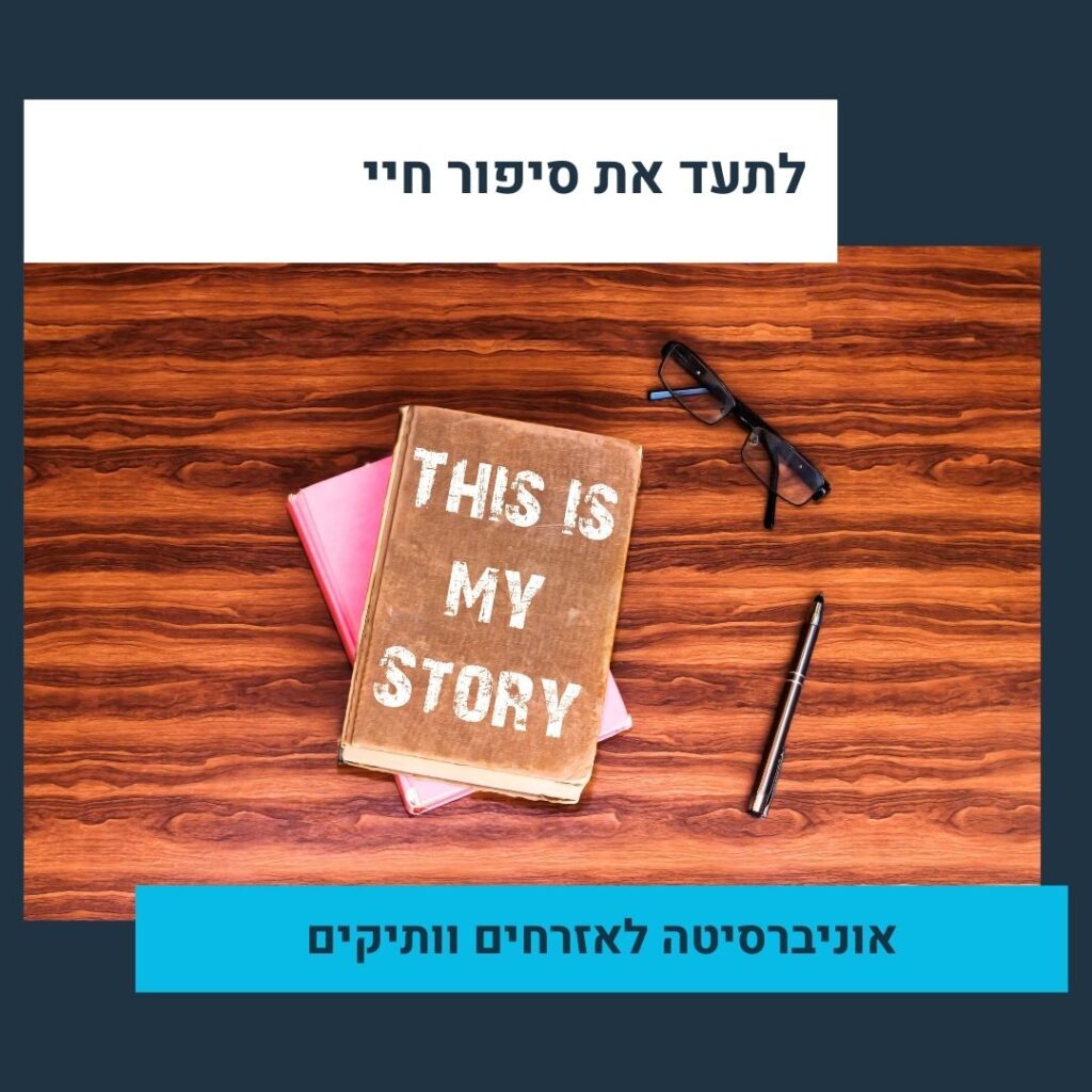 לכל אדם יש סיפור שהוא הרבה יותר מזיכרון אישי – זהו חלק מההיסטוריה של כולנו. הקורס "כאן סיפור חיי" הוא הזדמנות ייחודית לאזרחים ותיקים לחקור, לשמר ולשתף את סיפור חייהם כחלק מהפסיפס התרבותי והחברתי של ישראל. בקורס נלמד איך לספר את הסיפור האישי בתוך ההקשר ההיסטורי הרחב – דרך מסמכים, תצלומים, חפצים, וראיונות עומק – ונכיר כלי עבודה מהעולם הארכיוני והמידעני. כל משתתף יוביל פרויקט אישי שיסכם את עבודתו – תערוכה, תיק תיעוד או מיצג – ויהווה מתנה לדורות הבאים.